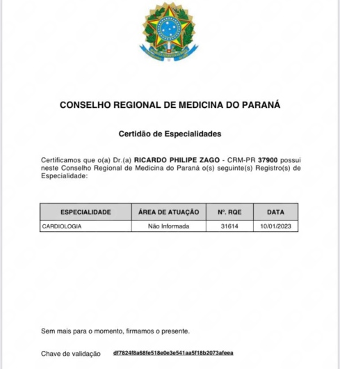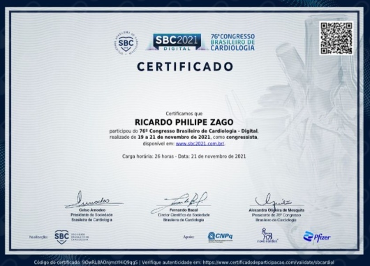 • Título de Especialista em Cardiologia – Membro da Sociedade Brasileira de Cardiologia (SBC)